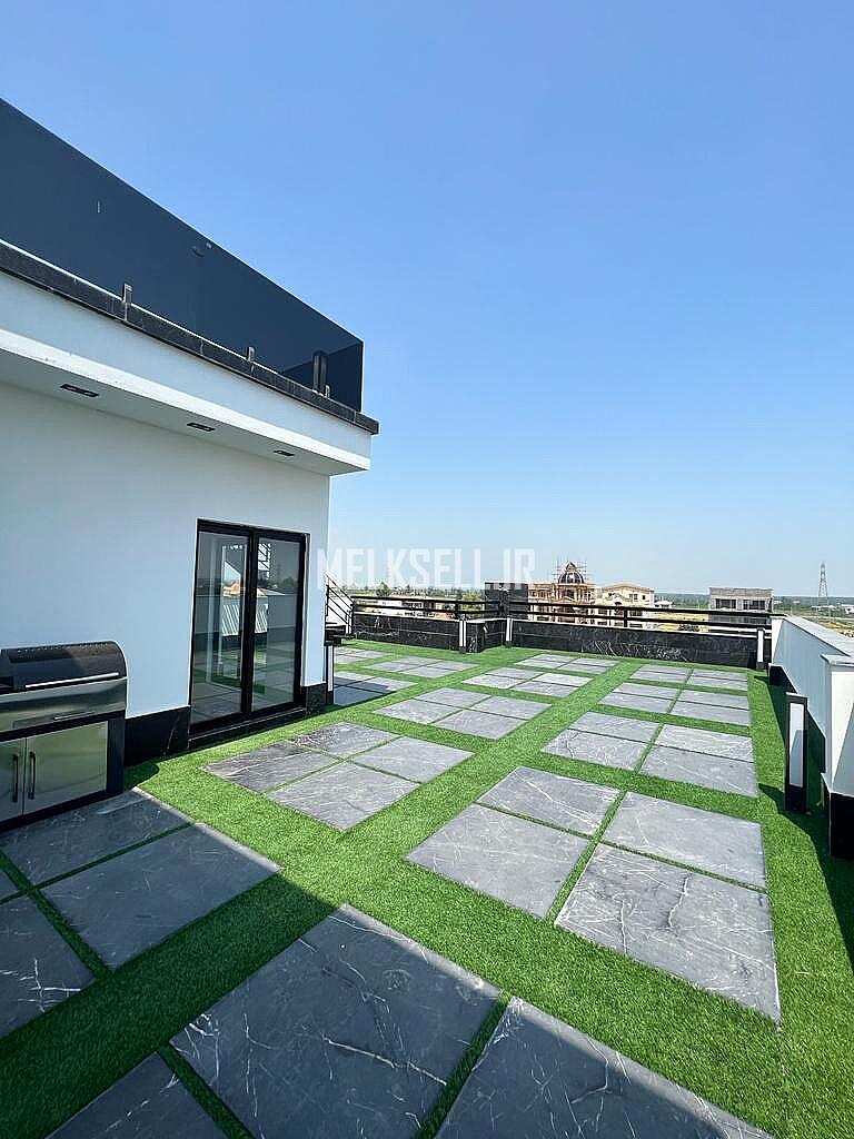 فروش ویلا مدرن تریپلکس منطقه برند ۳۰۰ متر زمین ۷۰۰ متر بنا ۵ خواب مستر استخر و سونا و جکوزی آسانسور دو تا رووف گاردن شهرک برند با نگهبانی دوربین مدار بسته و امنیت کامل نوساز و حیاط سازی شده مدارک تکمیل امکانات کامل